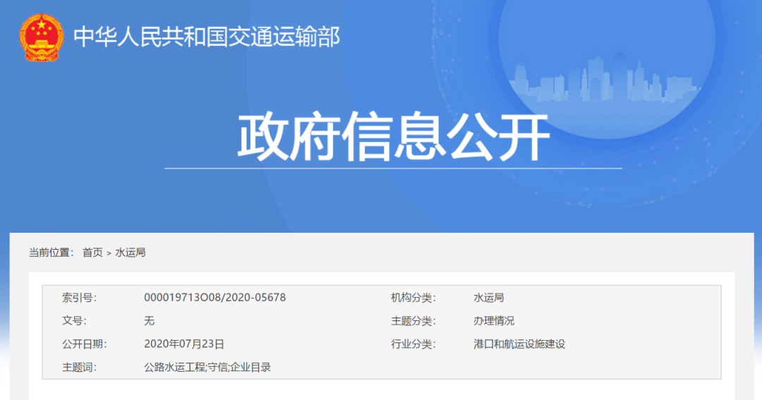 交通运输部关于公布2020年公路水运工程建设领域守信典型企业目录的公告